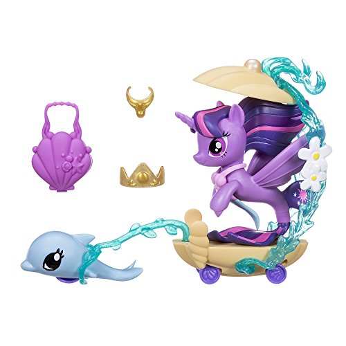 There's so much to explore in the land of Seaquestria! Inspired by the My Little Pony: The Movie, this Twilight Sparkle seapony figure has a beautiful tail and her cutie mark on her back fin. She also has a shell-shaped carriage led by a dolphin figure to imagine her riding around. At approximately 3-inches, imagine this Twilight Sparkle seapony figure on adventures undersea. My Little Pony and all related terms are trademarks of Hasbro. My Little Pony: The Movie. Copyright 2017 My Little Pony Productions, LLC. Licensed by Hasbro.Feature