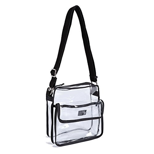 Clear Bag Messenger Crossbody with Velcroed Front Flap Pocket and Adjustable Shoulder Strap