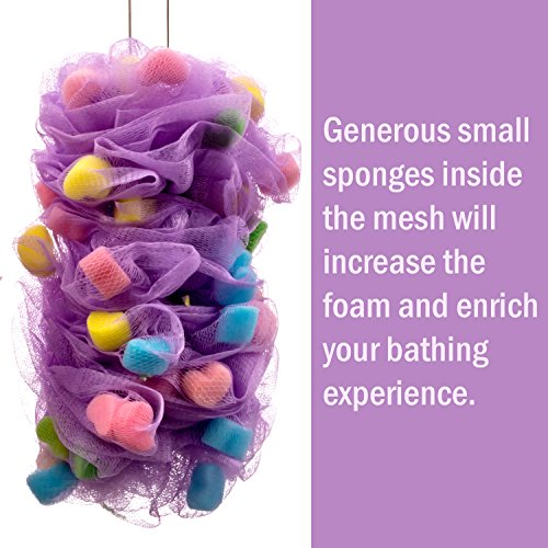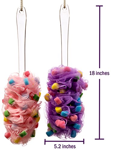 Bath Blossom Back Scrubber Brush (2 Pack) Loofah with Small Sponge and Mesh - Long Handled Shower Body Brush For Men and Women
