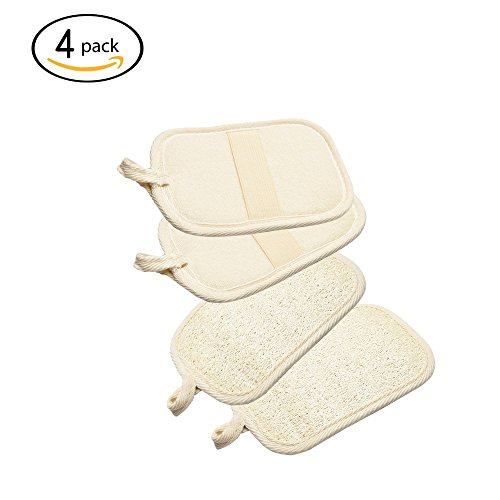 Achaiacn Exfoliating Loofah Pad 100% Natural Loofah Sponge Scrubber Brush Close Skin for Men and Women,4pack