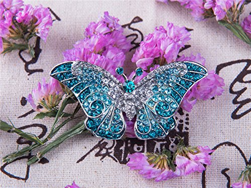 Any butterfly lover will marvel at this precious brooch pin. The exquisite variety of purple, green or grey colored rhinestones along with clear Swarovski crystals complement each other very well with the silver metal base.
