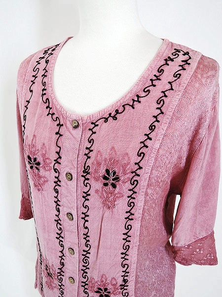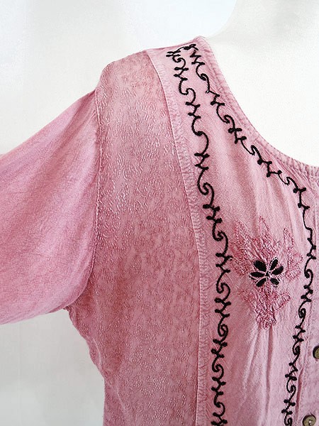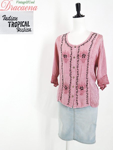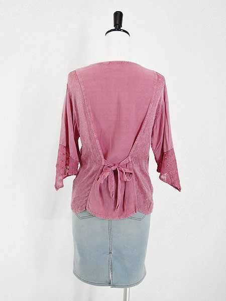 Ladies ブランド カラーピンク メール便不可 コンディション★★★ 素材レーヨン 表記サイズS 実寸サイズ 着丈 54 cm 身幅 49 cm 肩幅 42 cm 袖丈 16〜39 cm ※ウエスト・ヒップ以外は平置き採寸
