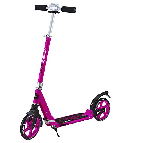 -. Feature : ►MAKE ANY KID'S DREAM COME TRUE: Are you looking for the best scooter to surP.R.Ise your little ones? Then look no more! Expertly engineered with a high-tech look and a long, non-slip deck with enough foot space to ensure a secure grip, this is the ultimate kick scooter for beginners and experienced riders, girls or boys alike. / ►ADJUST TO YOUR PREFERRED HEIGHT: Boasting a convenient, adjustable height feature, this kick scooter allows you to adjust the handlebar stem from 80 cm to 104 cm to fit every rider's needs. Perfect for kids, teens and even adults, it is a must-have outdoor toy for every family. / ►SAFE FOR CHILDREN: With a light tail for safety reasons and a high density aluminium alloy frame that can easily hold up to 220lbs (100kg) offering optimal stability and comfort, this kick scooter is designed with top performance and durability in mind. Plus, it's an excellent way to keep children outdoors and help them exercise. / ►FOLD & CARRY AROUND WITH EASE: Thanks to its foldable design, you can easily pack and carry this scooter with you everywhere you like! Simply fold it in half, put it in the car, train, bus or the tube and you're ready to set off to your new adventures! / ►RIDE ON ANY TYPE OF ROAD: Featuring a dual suspension system, extra-large, 8" (205 mm) urethane wheels with rear brakes and a comfortable handlebar grip to reduce vibrations, you can safely ride this deluxe kick scooter on even the bumpiest of roads with peace of mind! So why wait? Grab yours now, before they're gone!