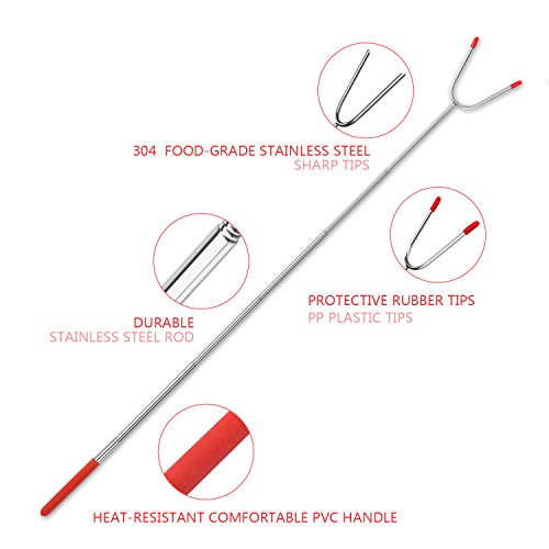 SAFE MATERIAL: FDA approved power welded forks using 18/8 304 FOOD-GRADE STAINLESS STEEL to ensure no rusting & safe roasting. PVC Handle is Moistureproof, Mothproof, Heat-Resistant. Protective Rubber tips for prongs, for perfect storage and safe handling around children.