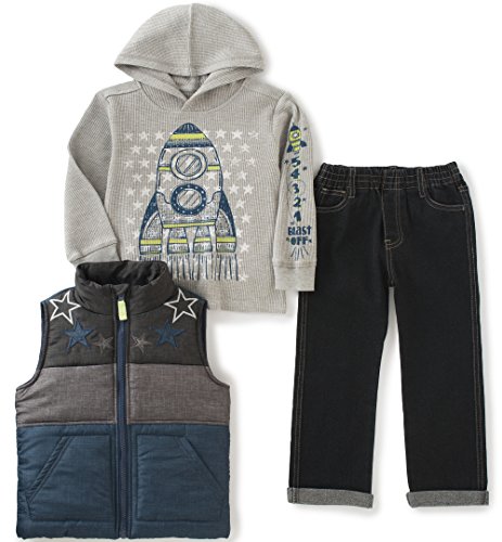 Kids Headquarters Little Boys' Toddler 3 Pieces Vest Set - Kangaroo Pockets, Gray, 3T
