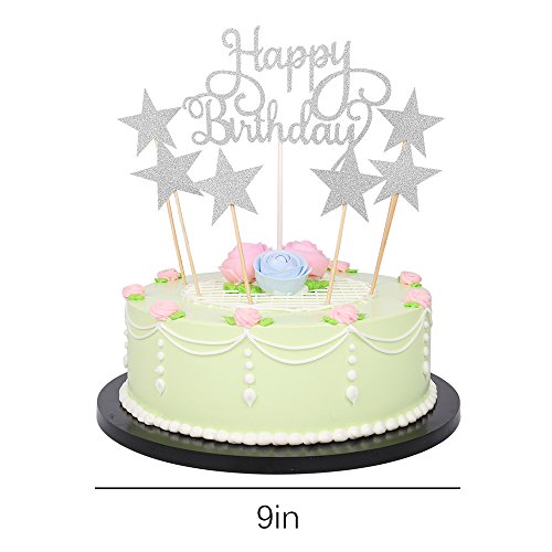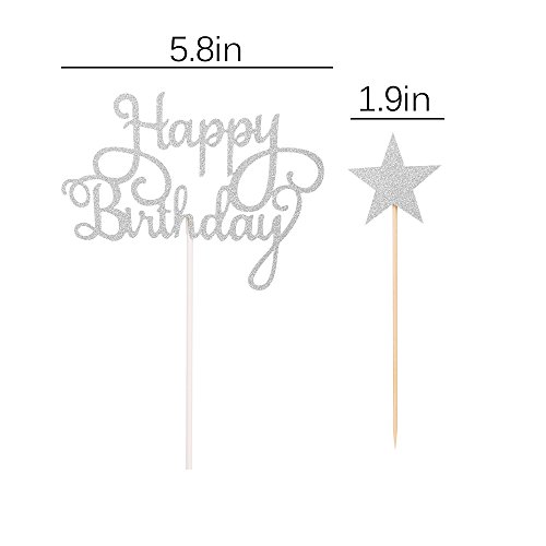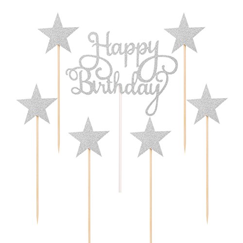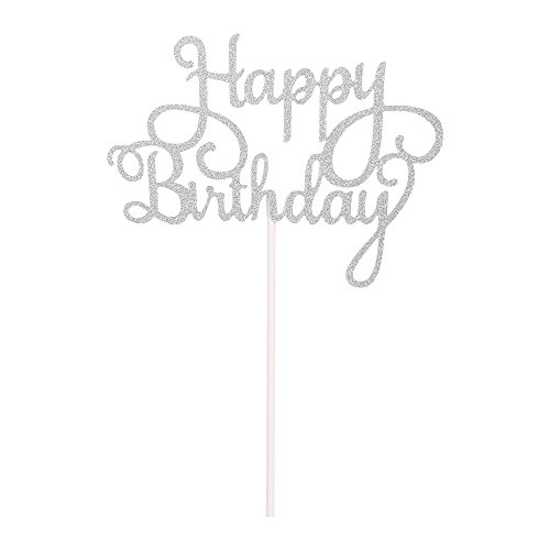 LXZS-BH 7 Pack Glitter Letters Happy Birthday Cake Topper Decorations (Silver)