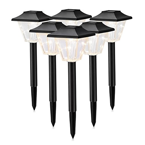 kinna Solar Garden Lights Waterproof 6 Pieces Outdoor Wireless Square Solar Landscape Lighting Warm Lights for Patio Pathway Driveway Lawn Decoration (Black)