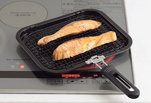 Dimension: Pan 10-1/2 x 8-1/2inches overall length: 14-1/2 inches Material: Steel use it on any Stove burner including Induction Heat Japanese salt-broiled fish (shioyaki) recipe salt broiling is a simple but delicious way to prepare fish. The salt sprinkled on the fish before broiling gives it a special flavor. Any small whole fish may be cooked in this way. Fillets, or boneless pieces of fish, may also be used as long as the skin is left on. Recipe ingredients 2 whole trout, cleaned, or 1/2 pound fish fillets with skin on Salt Soy sauce Lemon wedges How to make Japanese shioyaki salt-broiled fish Salt fish lightly on both sides and leave at room temperature for 30 minutes. Start charcoal grill or stove. Use Fish Broiler broil fish for about 5 minutes on each side or until golden brown. Serve with soy sauce and lemon wedges. Preparation time: 35 minutes cooking time: 10 to 15 minutes.Feature