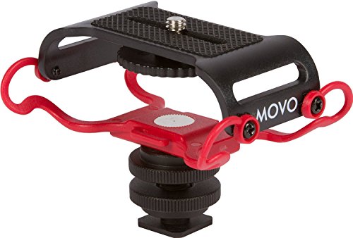 Movo Shock Mount Features: Four-Point Suspension, Camera Shoe Mount, 1/4" Thread Mount; Movo Hand Grip features: Solid Aluminum (Heavy) Construction, Foam Padded Handle, 1/4" Threads