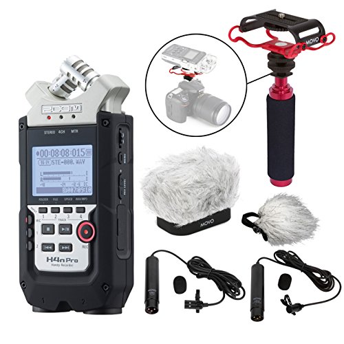 Zoom H4n PRO 4-Channel Handy Recorder ULTIMATE Bundle with Premium Omni & Cardioid XLR Lavalier Microphones, Fitted Dual Layer Recorder Windscreen, Shockmount, Camera Mount, Mic Grip & More