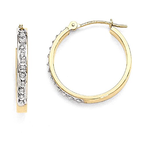 ICECARATS DESIGNER JEWELRY 14K YELLOW GOLD DIAMOND FASCINATION ROUND HINGED HOOP EARRINGS EAR HOOPS SET FOR WOMEN