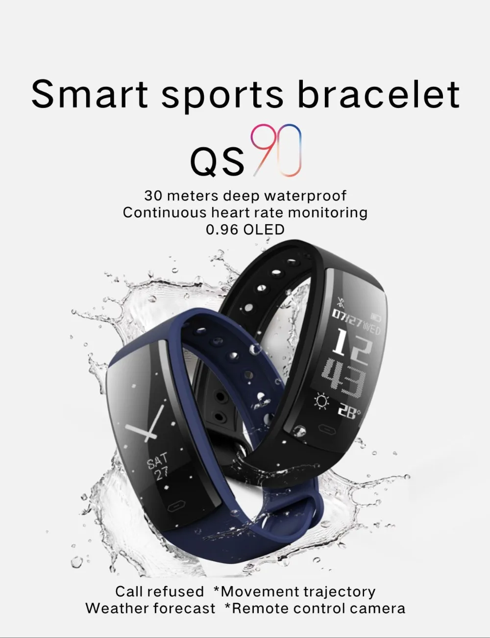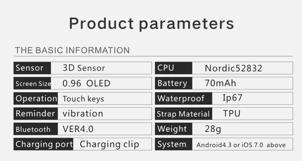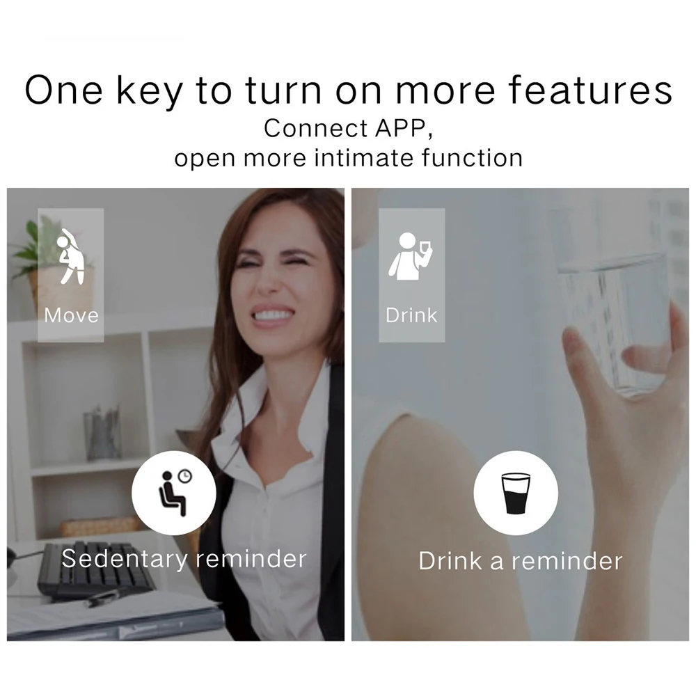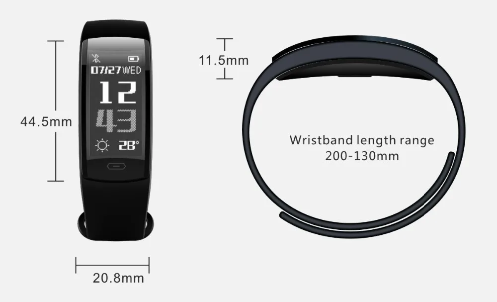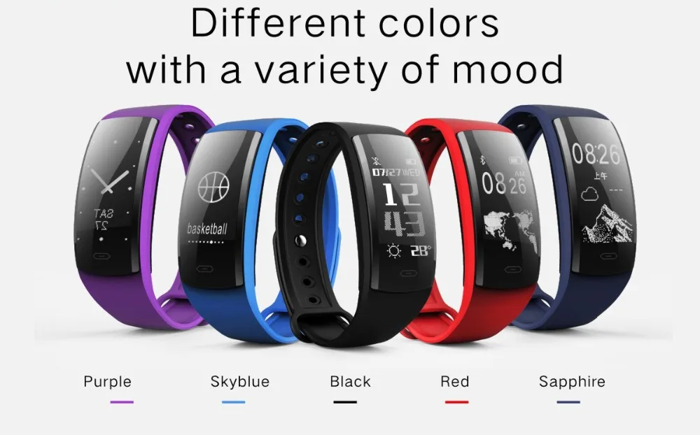 Function:Fitness Tracker,Message Reminder,Blood Pressure,Call Reminder,Passometer,Alarm Clock,Remote Control,Sleep Tracker,Heart Rate Tracker,Push Message