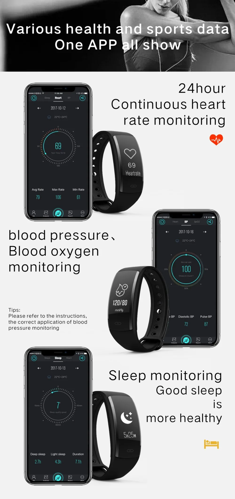 Feature 2:Fitness Bracelet Blood Pressure