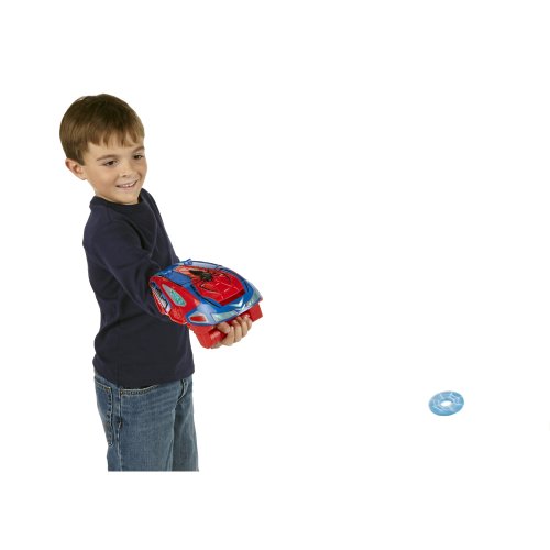Motorized rapid-fire play makes this web blaster fun and easy for young heroes to use! The wrist-mounted design lets them launch web discs like their favorite hero slings webs. From the makers of Nerf, this exciting Spider-Man experience includes launching web discs over 20 feet!