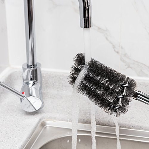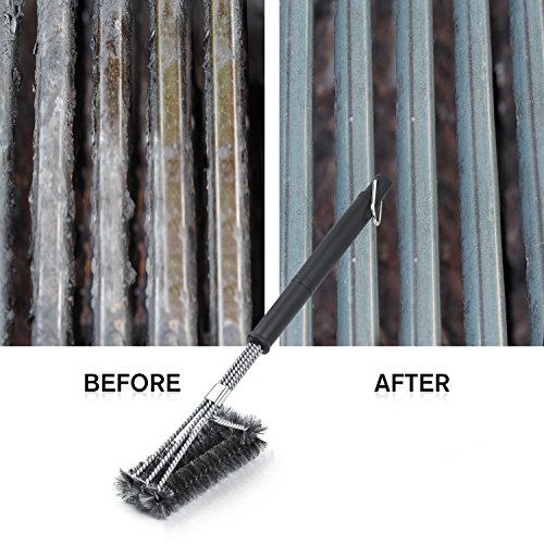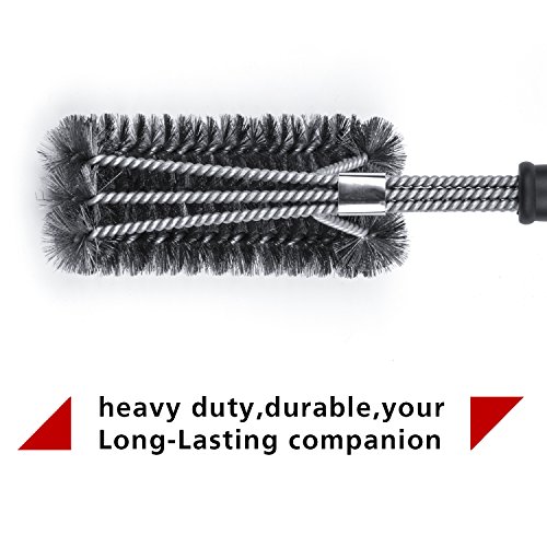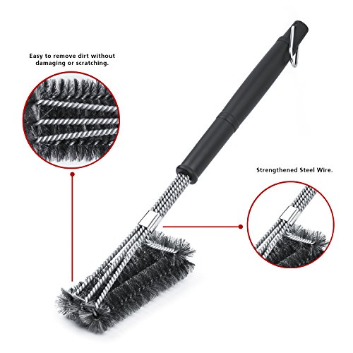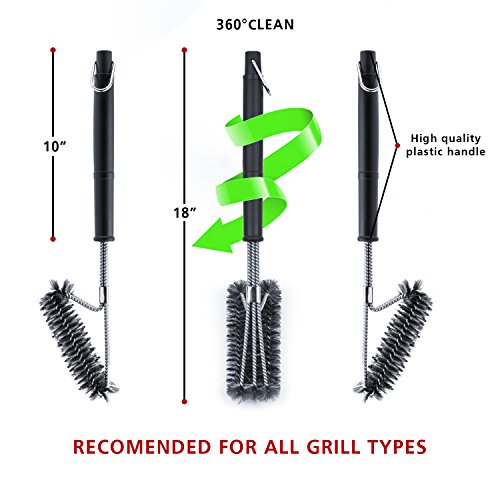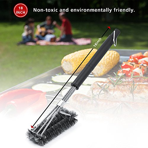 - ◆ EFFORTLESS CLEANING: With a unique design, this 18" long barbecue brush has three brushes in one, each with its own equivalent stroke. Be prepared to clean every bit of residue with its inovative 360 degree rotatorblade to remove hard corners.