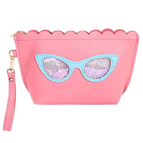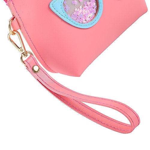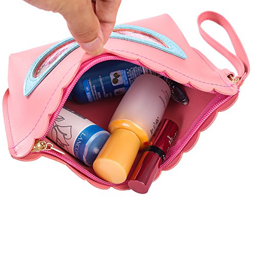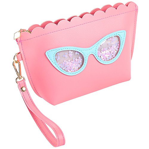 HOYOFO Girl Makeup Bag Travel Cosmetic Pouch with Wrist Strap Cute Accessories Girls, Pink