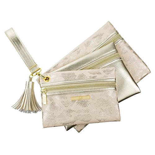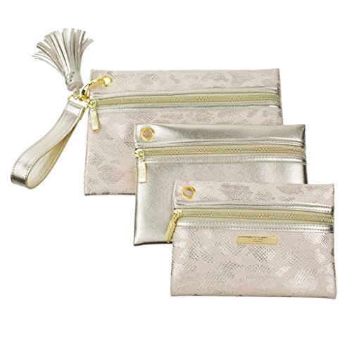 - Detachable wristlet strap (5" long) allows you to carry all 3 pouches together, or take apart to style each separately!