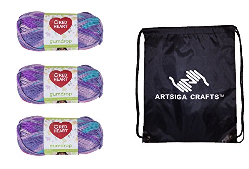 Bundle Includes 3-Pack of Red Heart Gumdrop Yarn Grape E800-0750 with 1 Artsiga Crafts Project Bag