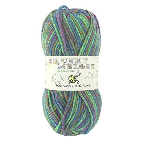 BambooMN Chunky Melody Medium Weight Yarn - Peacock - 70% Wool 30% Polyester Blend - 100g/skein
