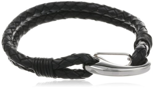 - Title : Men's Black Stainless Steel Lock Leather Bracelet