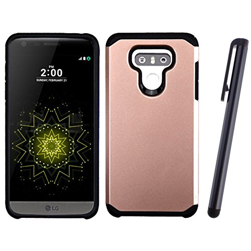 -. Title : LG G6 H870 Case, Fincibo (TM) Hybrid Astronoot Dual Layer Hard Shell Silicone Skin Snap On Protector Cover, Rose Gold/ Black + Stylus Pen
