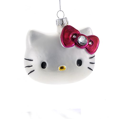 This Kurt Adler 3-Inch Hello Kitty Glass Head Ornament is a fun, unique way to add to the Christmas tree decor of any Hello Kitty fan. This glass ornament features Hello Kitty's head, with her trademark red bow, adorned with clear stones.Feature