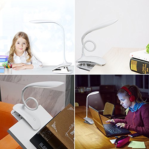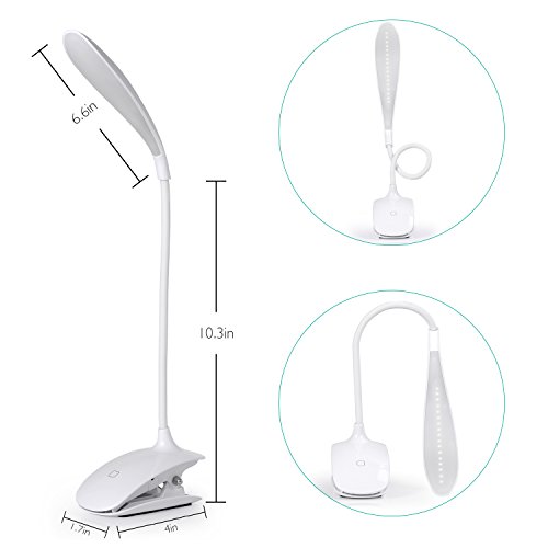 FLEXIBLE GOOSENECK & ADJUSTABLE CLIP: The silicone gooseneck is soft and flexible, allowing you to freely adjust the lighting angles. The clamp can be opened up to 1.2 inches, so you can clip the light on bedhead, desk, write board, book and so on.