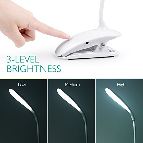 3-LEVEL BRIGHTNESS: The book light can be freely adjusted brightness from 3 different levels with a sensitive touch button. High, Medium and Low brightness can meets your different needs in daily life. Conveniently change the brightness with an easy touch.