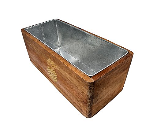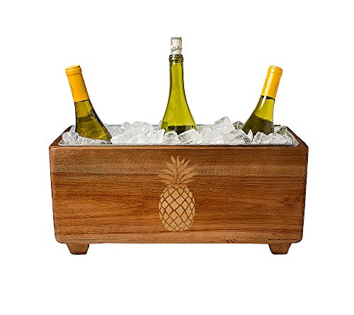 -. Brand : Cathy's Concepts -. Feature : Fir wood / Removable galvanized metal insert / Does not include bottles or ice / 8.5" H x 8" W x 17.5"L. / Holds up to 3 gallons -. PackageQuantity : 1 -. ProductGroup : Kitchen -. ProductTypeName : KITCHEN -. Title : Cathy's Concepts Wooden Pineapple Wine Trough