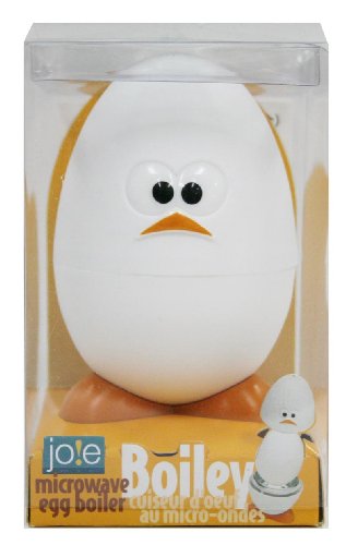 Joie’s Boiley Microwave Egg Cooker safely boils eggs to perfection right in the microwave. No more waiting for water to boil! Making perfect boiled eggs is fast and easy. Quickly make soft boiled, medium, and hard boiled eggs in 3 to 5 minutes without the wait or mess. Make quick boiled eggs for salad toppings, breakfast casserole, easy egg salad, breakfast burritos, enhancing soups, pasta, lasagna, and more. A must-have of microwave cooking utensils for home cooks of all ages, especially cooking with kids and the all day breakfast enthusiast. Whimsical, yet useful gadgets and gizmos make cooking easier and fun, and bring more joy to the task. Fun and functional kitchen gadgets make clever gifts, too! Instructions included. Made from aluminum and ABS that’s safe for use in up to 1000-Watt microwaves. Strong and durable. Hand wash in warm, soapy water.Feature