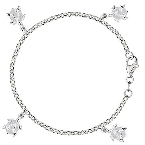 -. Title : Dangling Turtles Cable Chain Anklet In Sterling Silver