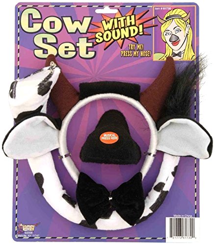 -. Binding : Toy -. Brand : Forum Novelties -. ClothingSize : One Size Fits Most -. Color : Animal Print -. Department : womens -. Feature : A classic farm animal perfect for your school play! -. IsAdultProduct : 0 -. Label : Forum Novelties -. Manufacturer : Forum Novelties -. MPN : FM61730 -. PackageQuantity : 1 -. PartNumber : FM61730 -. ProductGroup : Apparel -. ProductTypeName : TOYS_AND_GAMES -. Publisher : Forum Novelties -. Size : One Size Fits Most -. Studio : Forum Novelties -. Title : Cow set with sound
