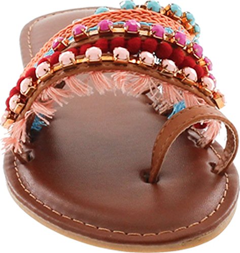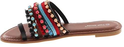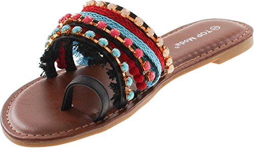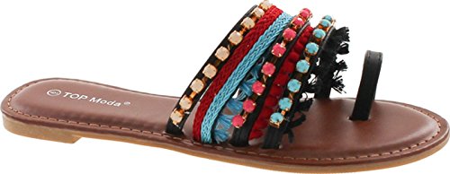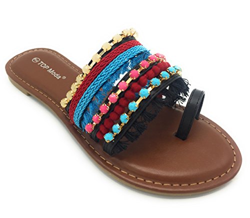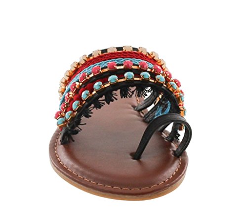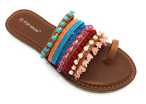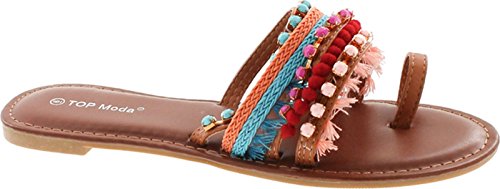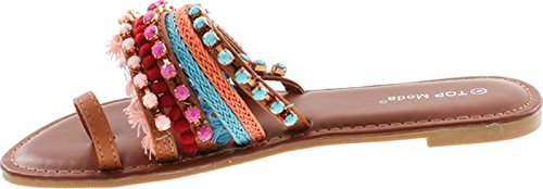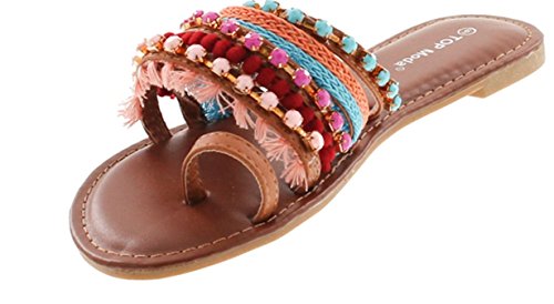 Spaza Top Moda Women's Flat Bohemian Tribal Style Summer Spring 2017 Sandal with Fringe and Fau...
