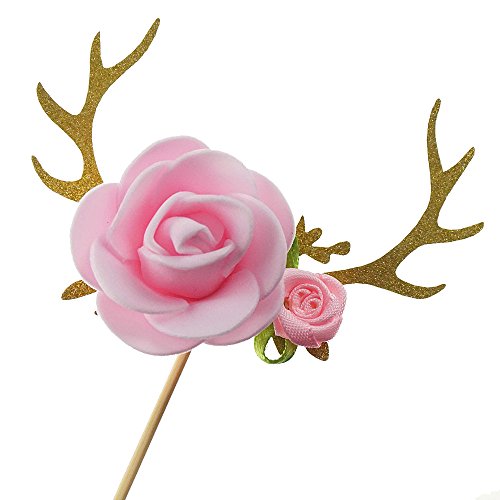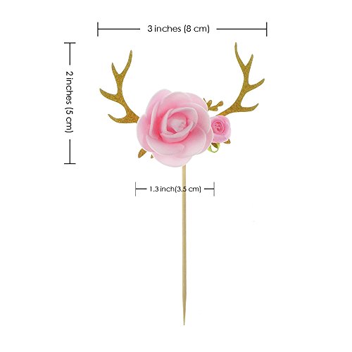 - Deer Themed Decor Of Superior Quality: Cupcake toppers antlers made of glitter paper, single-sided printed with handmade flowers. Transportation may cause deformation of flowers, need to be adjusted, does not affect the use.