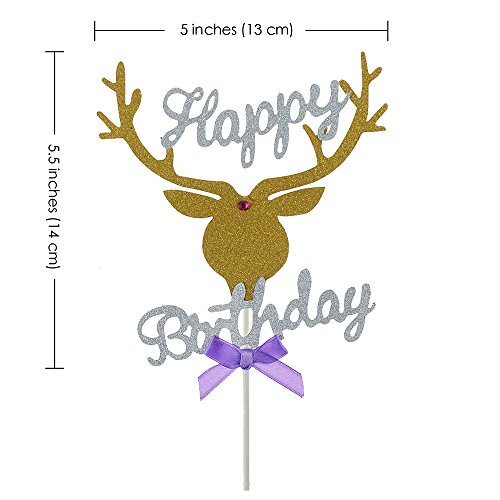 - Gold Deer Head Happy Birthday Cake Topper: Deer birthday cake topper size approx. 5 x 5.5 inches (13 x 14 cm), with paper stick.
