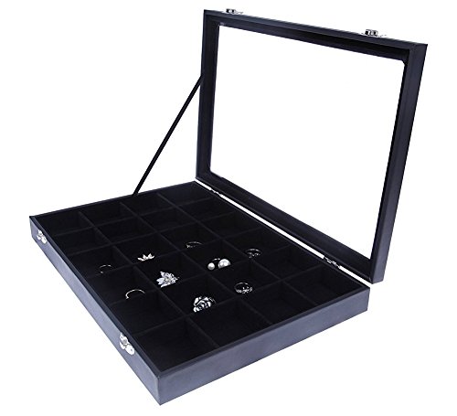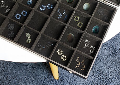 Featuring 24 spacious compartments and metal clasp closures, this tray is the ideal jewelry storage organizer for home or travel use.