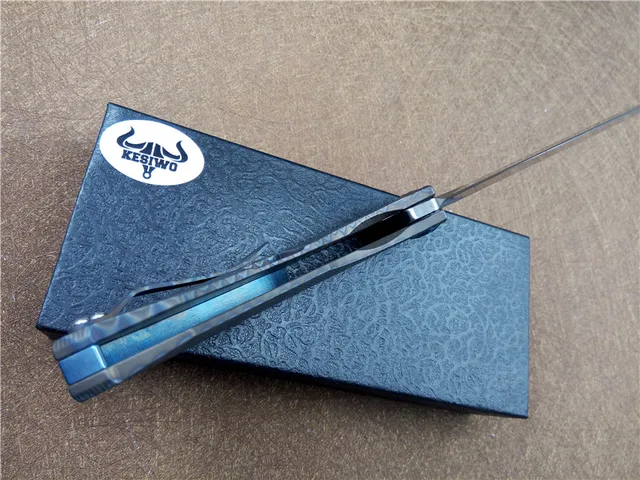 Kesiwo ks010 접는 edc 칼 titanium 핸들 59hrc d2 블레이드 캠핑 야외 생존 전술 포켓 나이프 볼 베어링