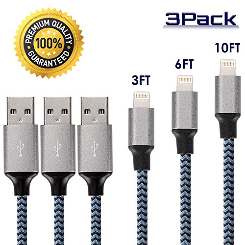 PACKAGE CONTENTS 3Pack (3FT 6FT 10FT) Nylon Braided lightning cables in black color.