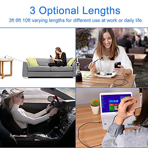 No Site Limitation Three different long iPhone charger cables allow various distance charging. When you can't reach the outlet at home and in office, or back-seat guys can't charge easily in the car, the 10FT cords can solve the problems.