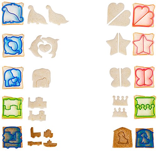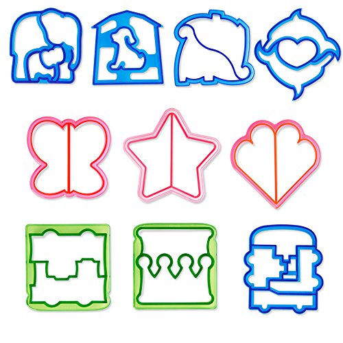 - Includes 10 cutters shaped as: elephants, dinosaurs, butterflies, five-pointed star, puppy, dolphin, car, love, train, crown