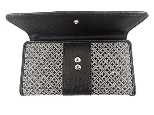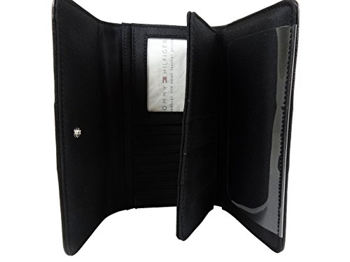 Travel in style with this deluxe Tommy Hilfiger Signature Continental Logo Wallet, complete with a premium fabric lining and the unique silver plated logo. Tommy Hilfiger uses only the finest quality custom material in crafting their handbags. Each piece slight texture and color variation to give their product its own unique character over time. Enjoy the classic styling and unique design of your Tommy Hilfiger wallet! Pair it with the many style of totes and shoppers available!Feature