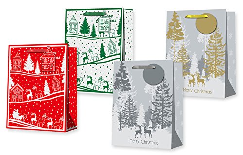 (Holiday Time)/Stationery Party Supplies/Gift Wrapping Supplies/DIRECT FROM USA/Set of 12 Large Christmas Hot Stamp Gift Bag Holiday with Gift Tag Santa Reindeer Deer Forest