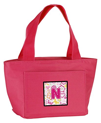 Caroline's Treasures CJ2005-NPK-8808 Letter N Flowers and Butterflies Pink Insulated Lunch Bag, Large, Multicolor