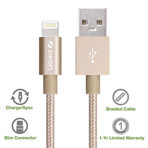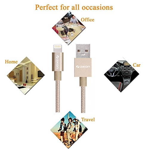 ZiKON Apple MFi Certified Lightning to USB Cable 3.3ft/1meter Nylon Braided Charge and Sync for iphone 6s, 6s plus, 6plus, 6,5s 5c 5,iPad Mini, Air,iPad5,iPod on iOS9 (Gold)