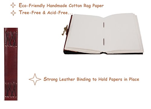 ✅ VINTAGE AND ANTIQUE APPEARANCE :- Designed to stand out from the crowd. Hand cut asymmetric flap and cover with handmade paper. The leather wrap around strap effectively keeps your journal closed and also acts as a handy bookmark. This old-fashioned leather has an amazing smell!