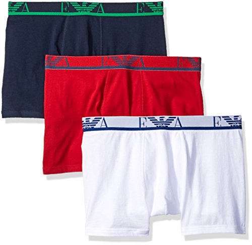 Emporio Armani Men's 3-Pack Cotton Trunk, Marine/White/Red, Small
