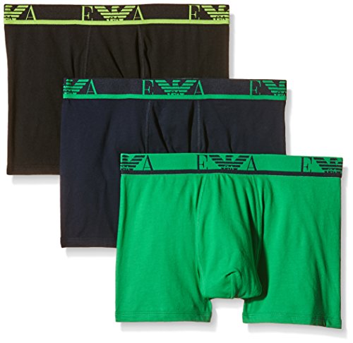 Emporio Armani Men's 3-Pack Cotton Trunk, Marine/Black/Lawn, Small