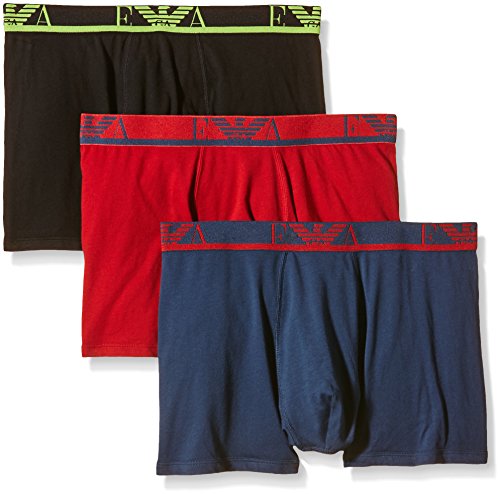 Emporio Armani Men's 3-Pack Cotton Trunk, Marine/White/Red, Medium