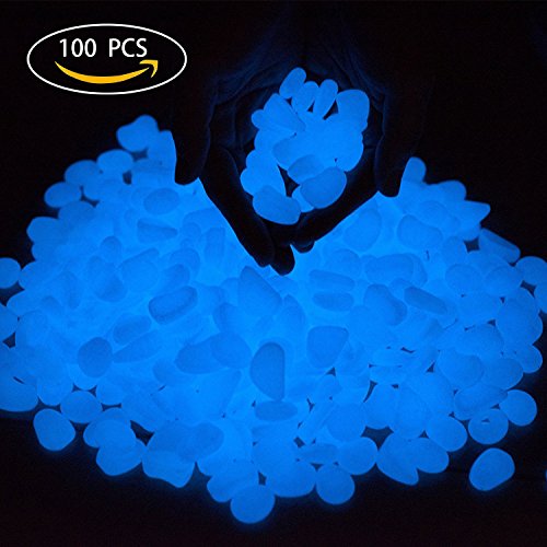 Ovinm Glow Pebbles in the Dark Garden for Walkways and Decor, 100 Packs in Blue (100 pcs)