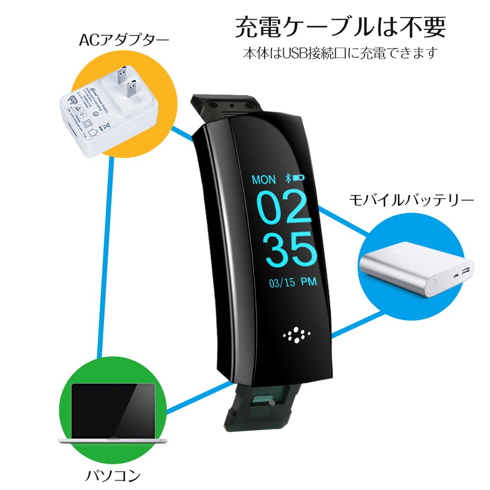 1, USB both sides of the smart bracelet can be connected to the power supply, so you can charge when you connect the metal of the smart bracelet with the metal of the power supply.